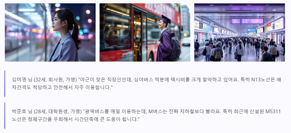 "야근이 잦은 직장인인데, 심야버스 덕분에 택시비를 크게 절약하고 있어요. 특히 N13노선은 배차간격도 적당하고 안전해서 자주 이용합니다."