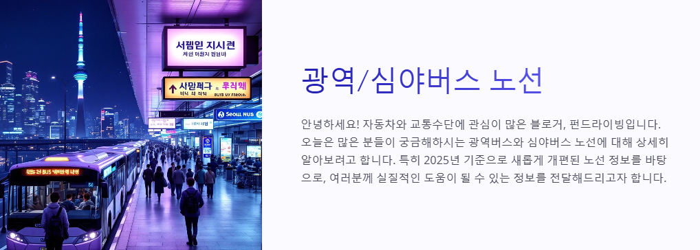 안녕하세요! 자동차와 교통수단에 관심이 많은 블로거, 펀드라이빙입니다. 오늘은 많은 분들이 궁금해하시는 광역버스와 심야버스 노선에 대해 상세히 알아보려고 합니다. 특히 2025년 기준으로 새롭게 개편된 노선 정보를 바탕으로, 여러분께 실질적인 도움이 될 수 있는 정보를 전달해드리고자 합니다.