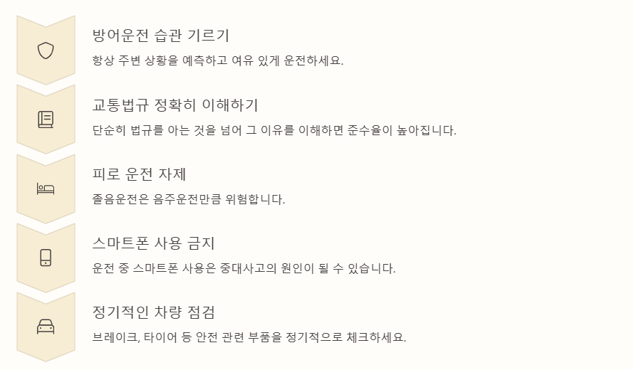 3. 피로 운전 자제: 졸음운전은 음주운전만큼 위험합니다.