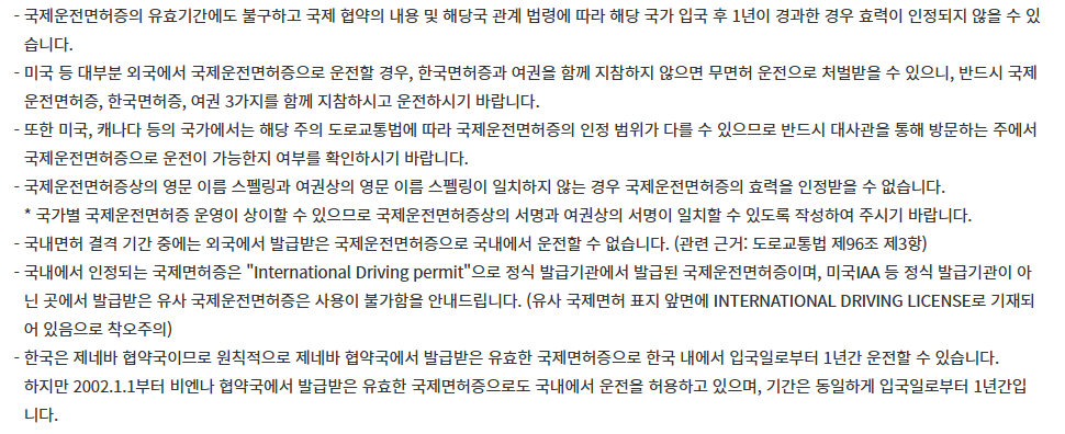 하지만, 일부 국가에서는 별도의 규정이 있으므로 방문 국가의 운전 규정을 미리 확인하는 것이 좋습니다.