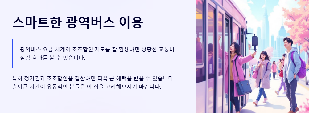 안녕하세요! 오늘은 2025년 기준 광역버스 요금 체계와 많은 분들이 놓치고 있는 조조할인 혜택에 대해 상세히 알려드리려고 합니다.