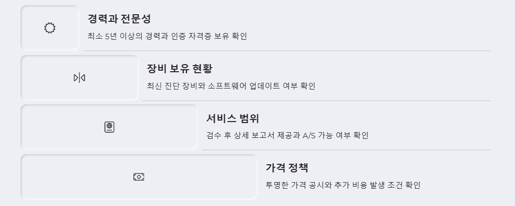 - 페인트 측정기, 진단기 등 전문 장비 보유