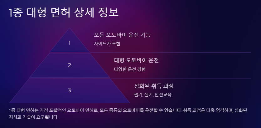 - 안전교육: 대형 오토바이 운전에 관한 안전 교육을 이수해야 합니다.
