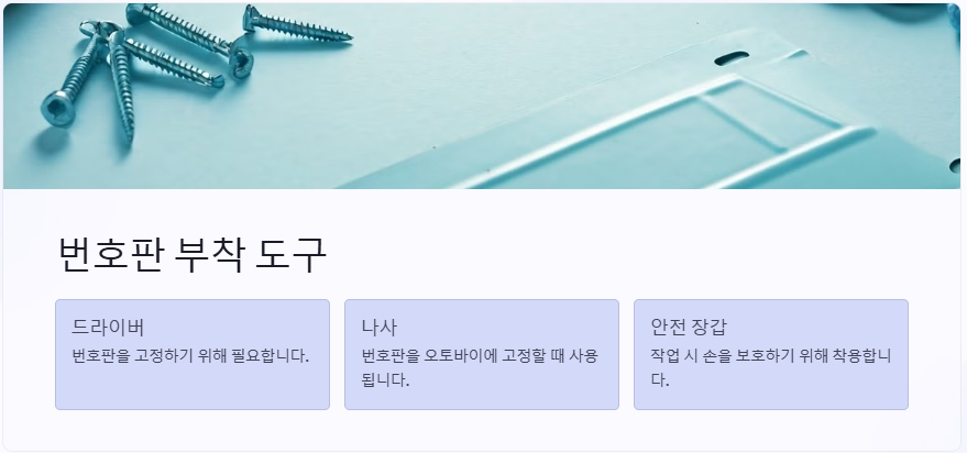 Q3: 번호판 부착 시 필요한 도구는 무엇인가요?