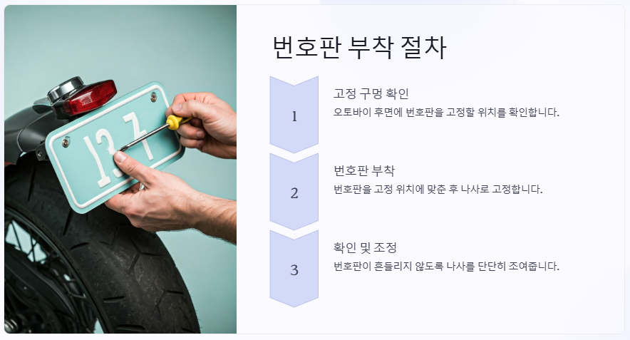 오토바이 번호판 등록과 부착은 법적으로 필수적인 절차입니다.