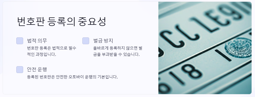 오토바이 번호판 등록과 부착은 법적으로 필수적인 절차입니다.