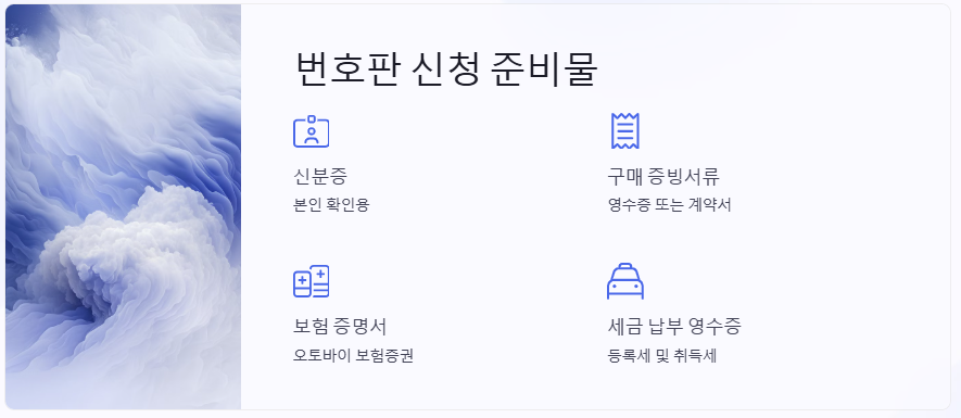 Q1: 오토바이 번호판 등록 시 필요한 서류는 무엇인가요?