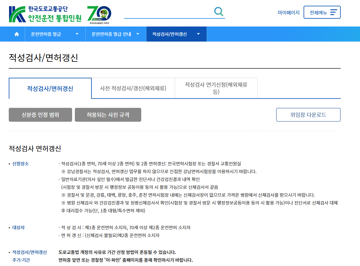 적성검사/면허갱신 | 한국도로교통공단 안전운전 통합민원