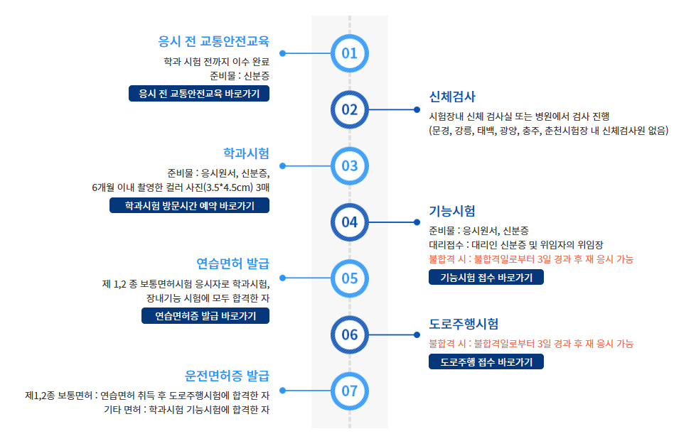교통안전교육 이수 후 필기시험을 보게 되므로 여유 있는 시간으로 계획하세요.