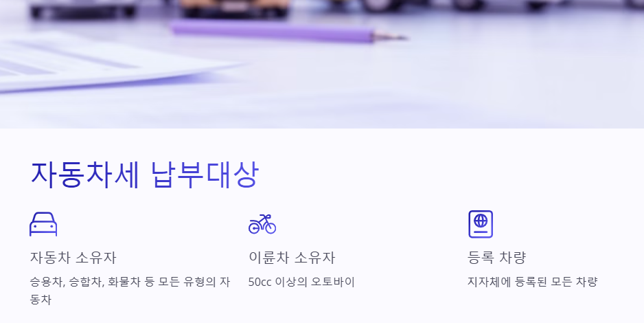 - 등록된 이륜차 소유자: 50cc 이상의 이륜차(오토바이) 소유자도 납부 대상에 포함됩니다.