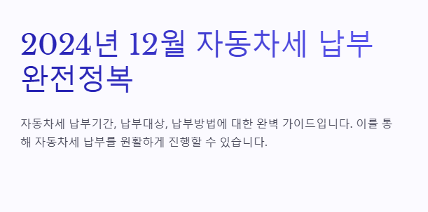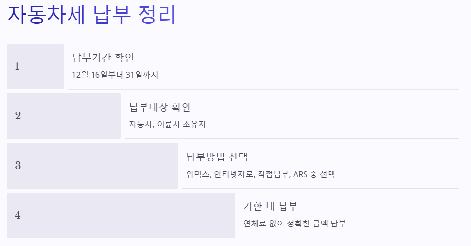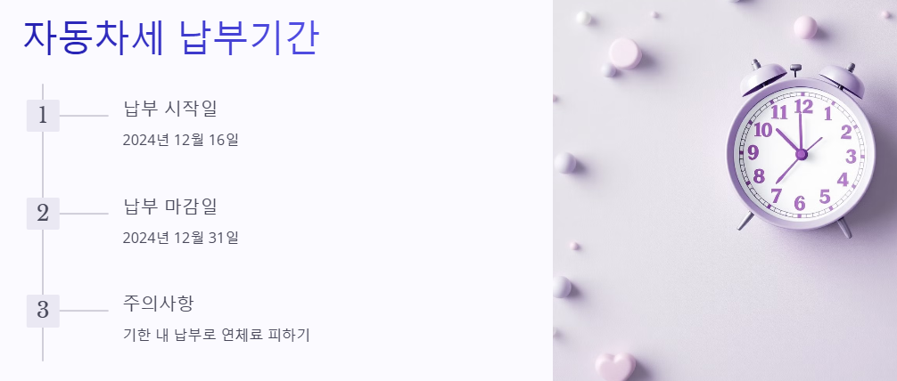 2024년 12월이 다가오면서 자동차세 납부 기간과 방법에 대해 알아볼 필요가 있습니다.