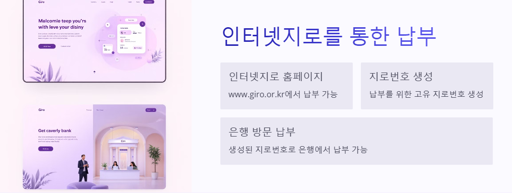 - 인터넷지로 홈페이지: 인터넷지로 홈페이지에서 납부할 수 있습니다.