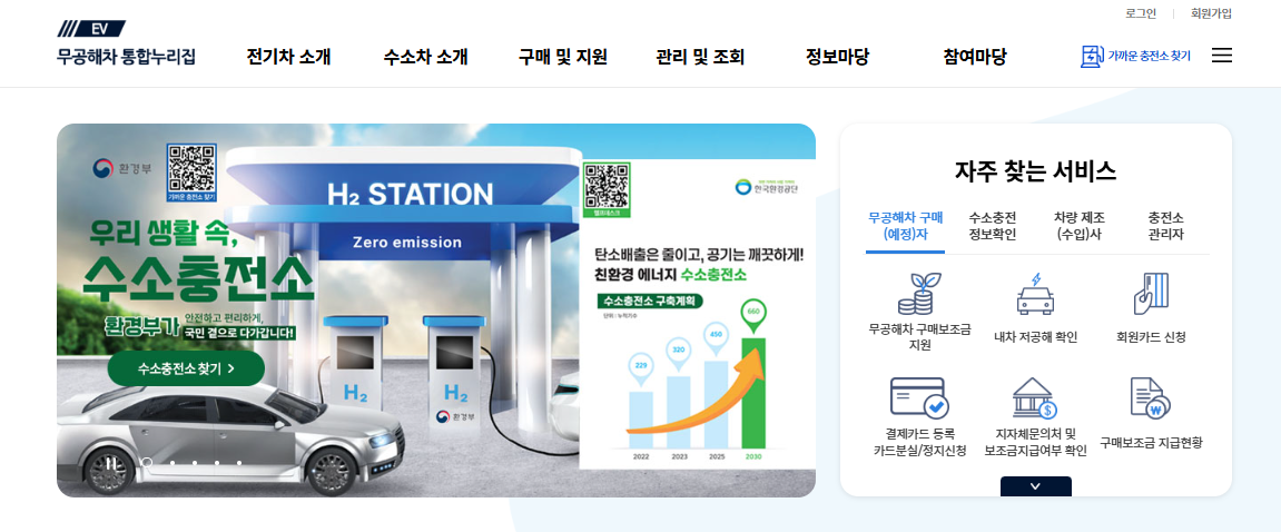 보조금을 확인하는 가장 쉬운 방법은 무공해차통합누리집(https://ev.or.kr/)을 이용하는 것입니다. 이 사이트는 전기차 관련 정보를 한 곳에 모아 제공합니다. 조회 방법은 간단합니다.