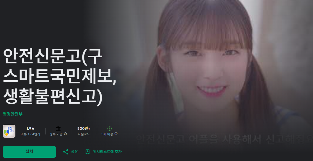구글 플레이스토어 또는 앱스토어에서 ‘안전신문고’ 검색 후 설치