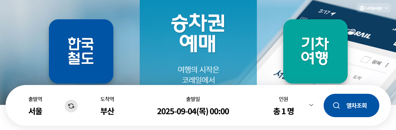 | 추석 연휴 코레일 ktx srt 기차표 예매 방법 시간 일정 모바일 (0) | 2025.09.04 |