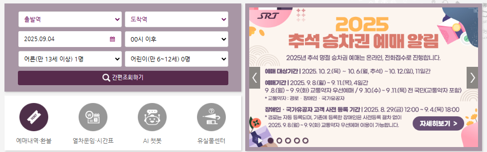 | 추석 연휴 코레일 ktx srt 기차표 예매 사이트 바로가기 (0) | 2025.09.05 |